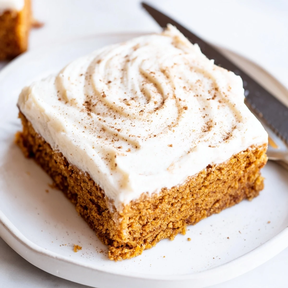 These moist pumpkin bars capture the essence of fall with warm spices like cinnamon, nutmeg, and ginger. The tender crumb comes from pumpkin purée blended with brown sugar, while the tangy cream cheese frosting adds a rich, creamy contrast.