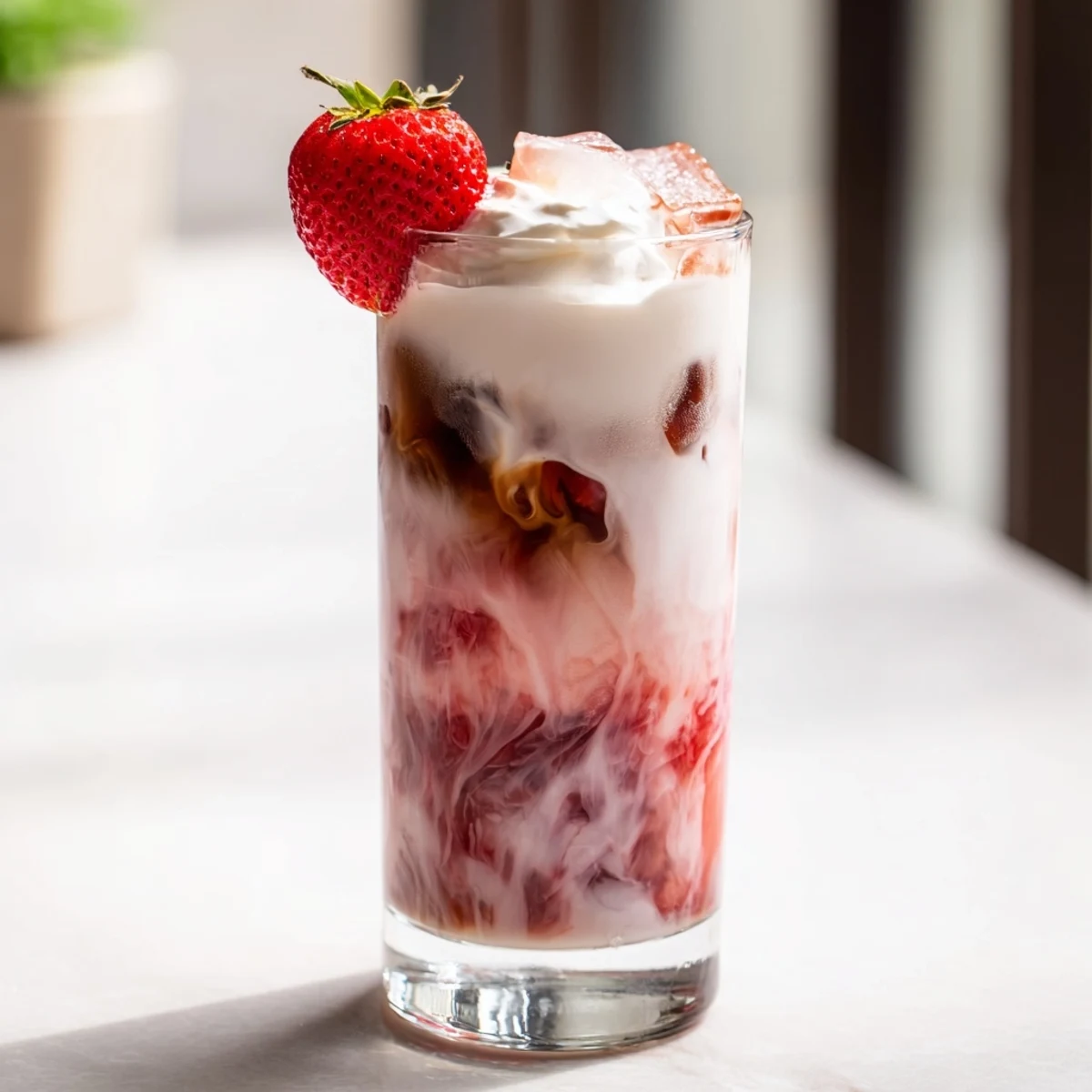 Pour the strawberry cream mixture over ice first, then slowly drizzle the coffee down the side of the glass using the back of a spoon. This technique creates beautiful swirling layers.